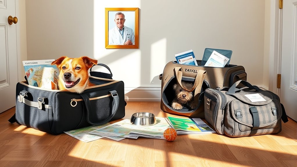 When you’re planning your trip, it’s essential to book transportation that accommodates your pet. Each carrier has different requirements, from carrier specifications to documentation like vaccination records, so you’ll need to do your homework. Understanding these rules will help guarantee a smooth journey for both you and your furry companion. Additionally, consider the potential benefits of advance directives to ensure your pet’s care preferences are respected in case of an emergency.