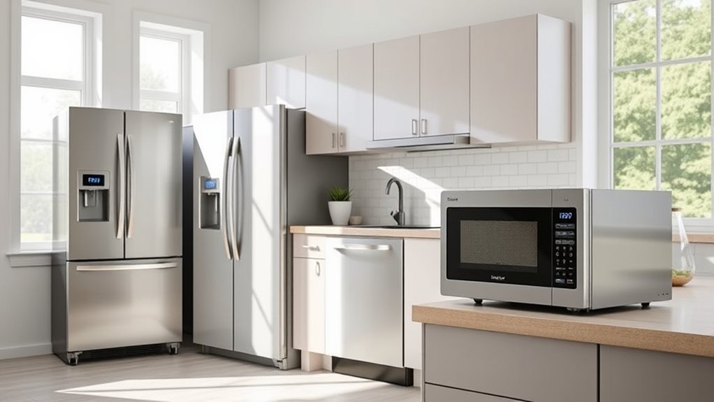 Have recent innovations in energy technology transformed how appliances operate? Absolutely. Modern appliances now feature smart sensors that automatically adjust power usage based on your needs, reducing waste. Variable speed motors improve efficiency in dishwashers and HVAC systems, saving energy without sacrificing performance. Advanced inverter technology allows appliances to run more quietly and efficiently, using less electricity. Some refrigerators now include adaptive defrost systems that only activate when necessary, preventing unnecessary energy use. LED lighting has replaced traditional bulbs across appliances, consuming a fraction of the energy. These innovations help you cut costs and minimize your environmental impact. By understanding and choosing appliances with these cutting-edge features, you ensure your home is both energy-efficient and future-ready.